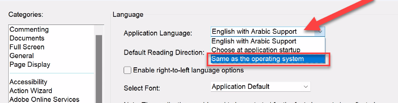 For the setting labelled Application Language: Make sure it is set to Same as the operating system.