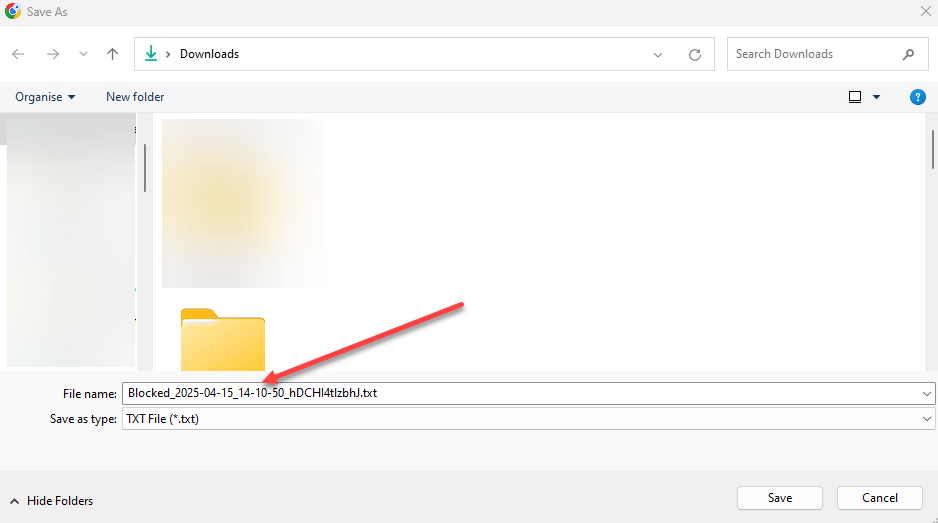 File Explorer will load will Save As, but it the filename will being with Blocked;