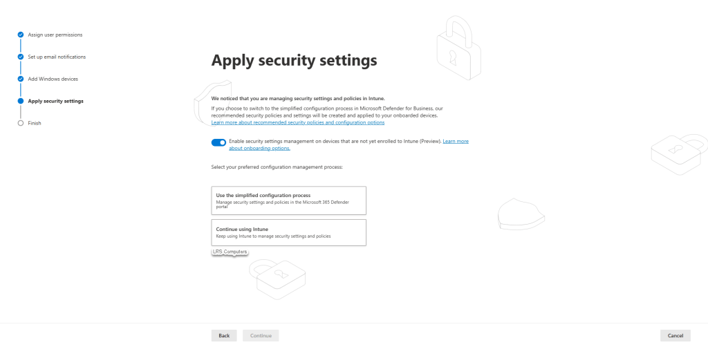You get two options; Use the simplified configuration process or Continue using Intune. Because this guide is about Intune, I’d recommend going with the Intune option.