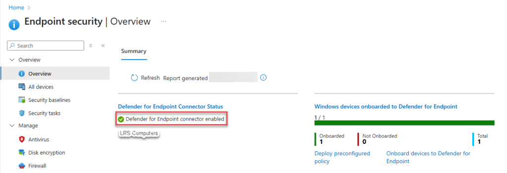 Head over to your Admin Intune Portal > Endpoint Security > Overview. Within Overview, you should see the Defender for Endpoint Connector Status as unavailable;