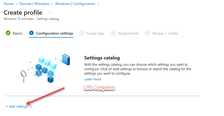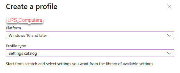 Profile type: Settings catalog