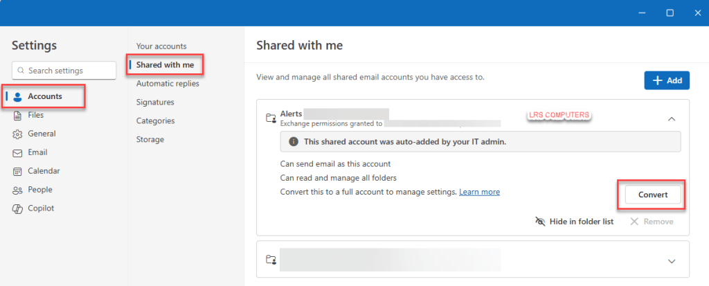 However, with New Outlook – we can now go into the settings and Convert. This means we no longer need to run PowerShell to disable automapping.